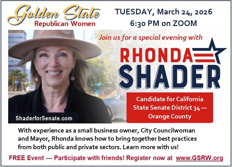 Join on us on Zoom for our first speaker series of 2026 with special guest Rhonda Shader, candidate for California State Senate District 34- Orange County.